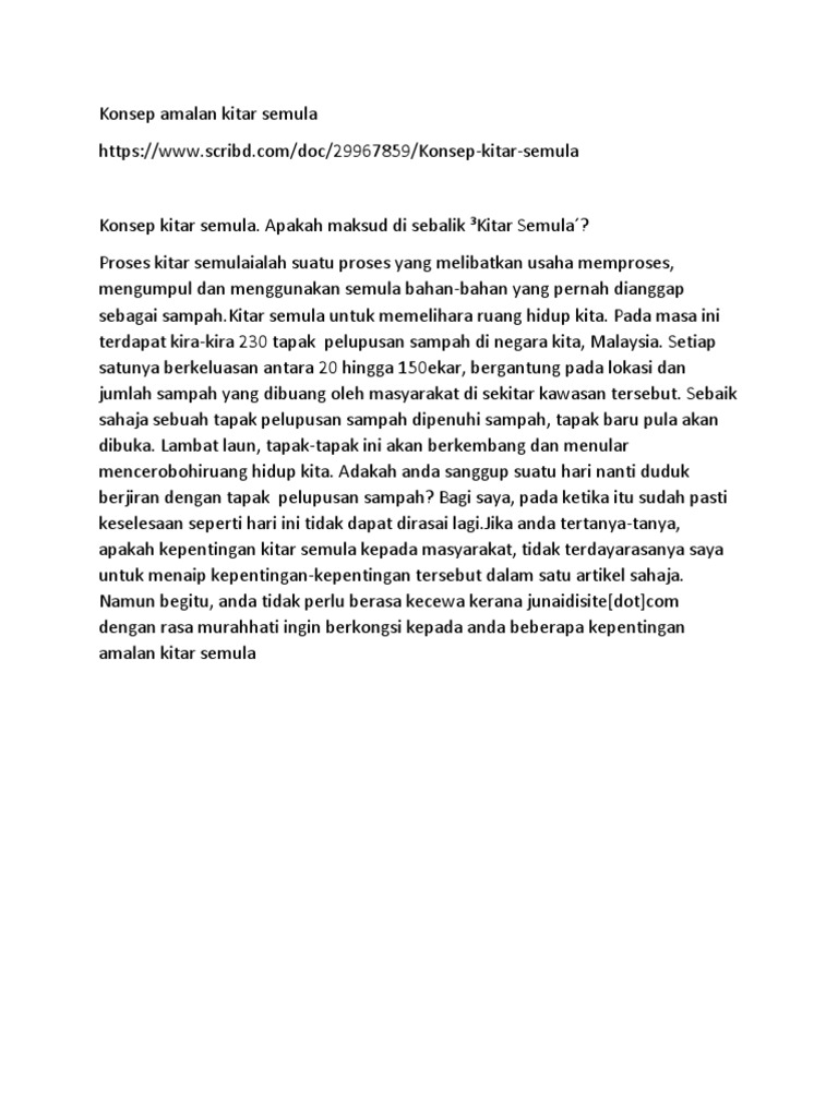 . Dengan itu isi rumah telah mengamalkan satu daripada tiga konsep kitar semula iaitu mengurangkan isipadu sampah-sarap. Seperti yang diketahui kini terdapat kira-kira 230 tapak pelupusan sampah di Malaysia. Konsep Kitar Semula Pdf Kitar semula merupakan amalan yang menggunakan konsep 3r reduce reuse dan recycle dalam kehidupan seharian.